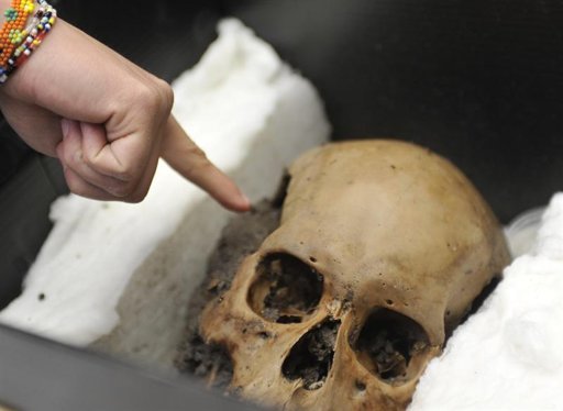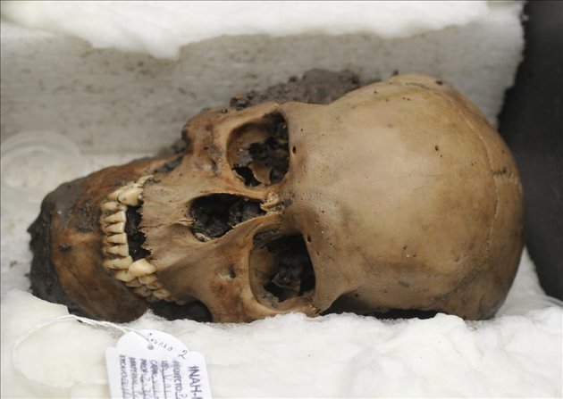 Los 50 cráneos desenterrados en méxico, presentan un singular agujero en los costados, lo que indica que estos fueron expuestos en un tzompantli o empalizada. Fueron enterrados con una piedra de sacrificios, segun los arqueólogos los cráneos fueron arrojados sobre esta piedra al ser retirados de la empalizada, por cálculos que se han hecho parecen ser de mujeres y hombres entre los 25 y 30 anos.