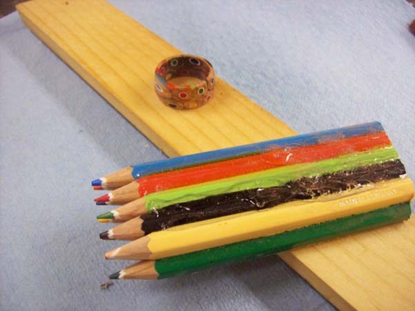 Un bonito anillo creado a partir de lápiz de colores, si te animas puedes visitar su canal de youtube para ver todos sus proyectos.